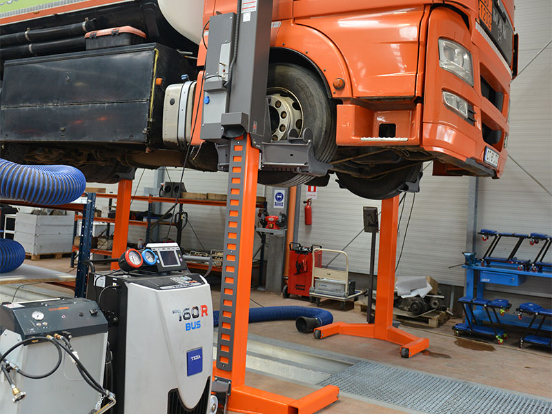 Pentru lucrarile pe sistemul de suspensie si rulare sunt disponibile mai multe echipamente hidraulice: presa fixa de 100t, o presa mobila de pivotat, un set de extractoare complex cu un cilindru hidraulic de 17t si calibre pentru presarea depresarea bucsilor pe masina.