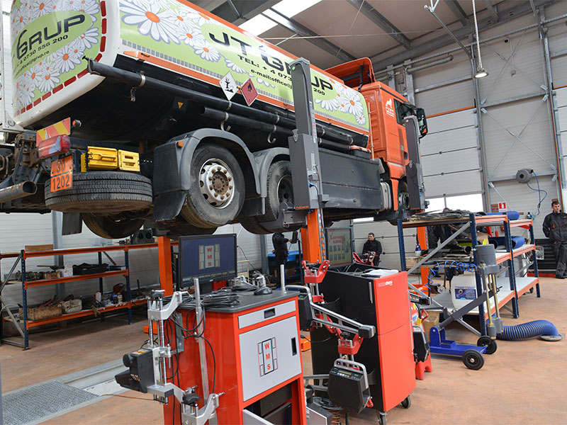 Echipamentele de ridicare si calare sunt adaptate pentru clasele de autovehicule vizate: elevator cu 4 coloane mobile, 2 cricuri de canal cu seturi complete de suporti pentru calare, cricuri crocodil de 5 si 20t, cric de canal pentru autoturisme si cric mobil de podea pentru interventia pe transmisie.